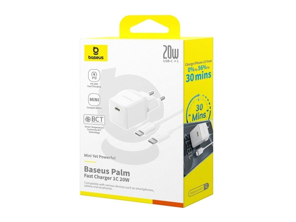 Baseus Palm Fast Nabíječka USB-C 20W + Datový Kabel USB-C/USB-C 1m White
