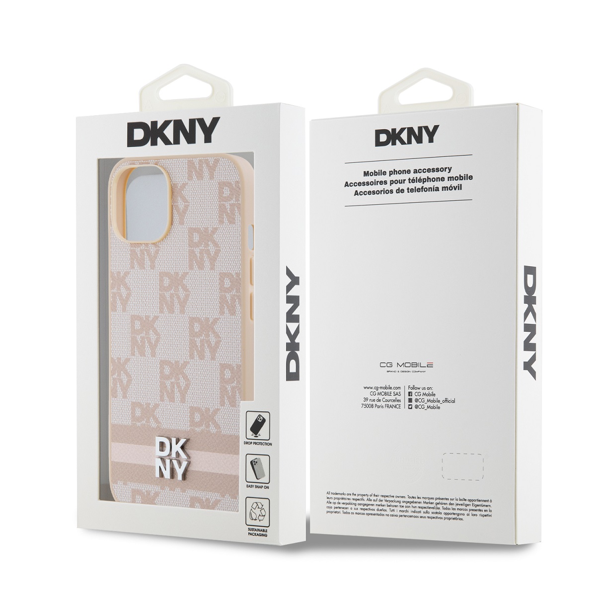 DKNY PU Leather Checkered Pattern and Stripe Zadní Kryt pro iPhone 13 Pink