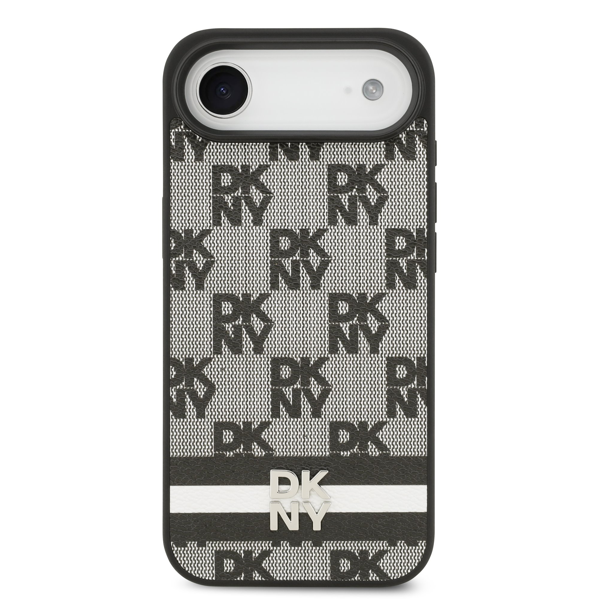 DKNY PU Leather Checkered Pattern and Stripe Zadní Kryt pro iPhone Air Black