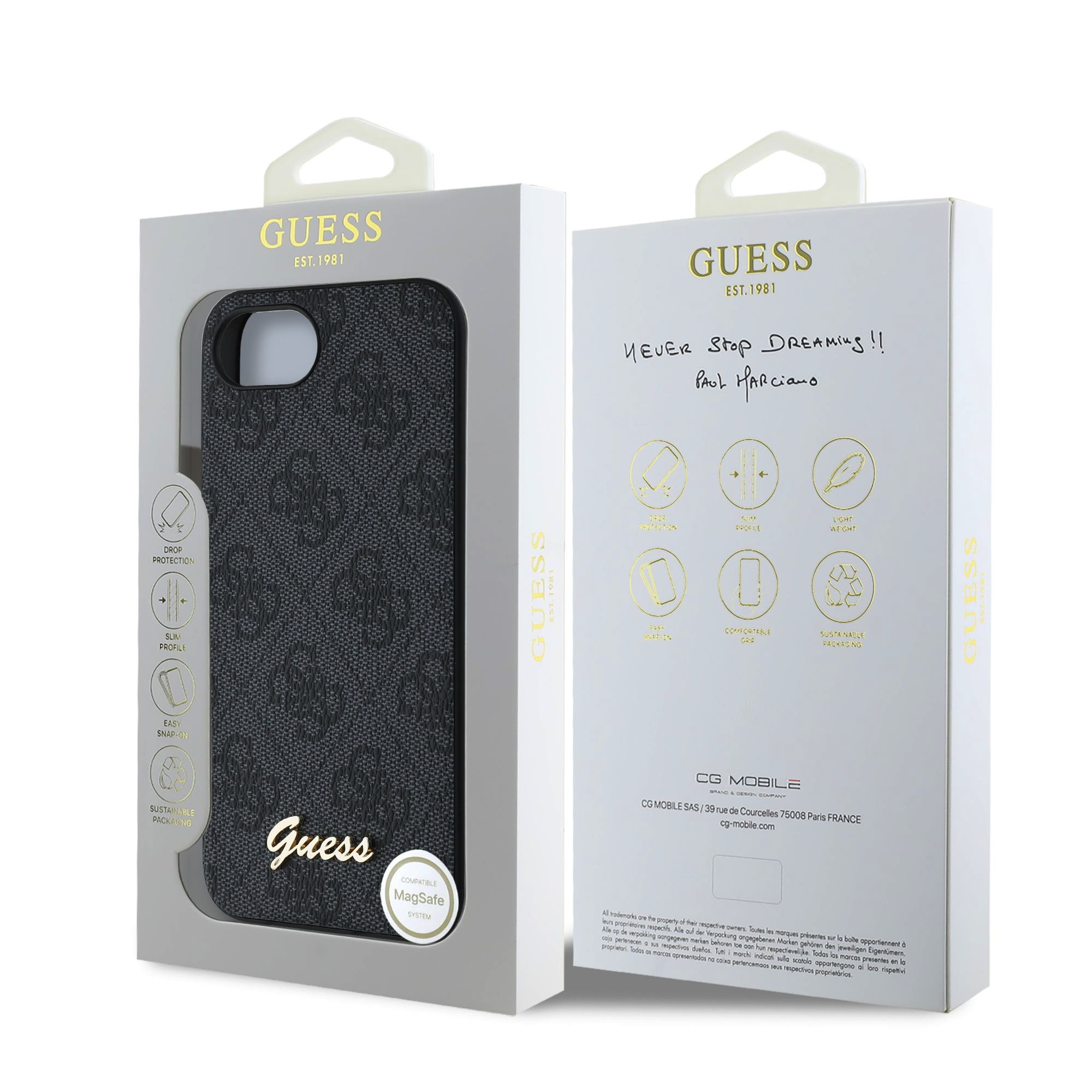 Guess 4G Script Logo MagSafe Zadní Kryt pro iPhone 16e/17e Black