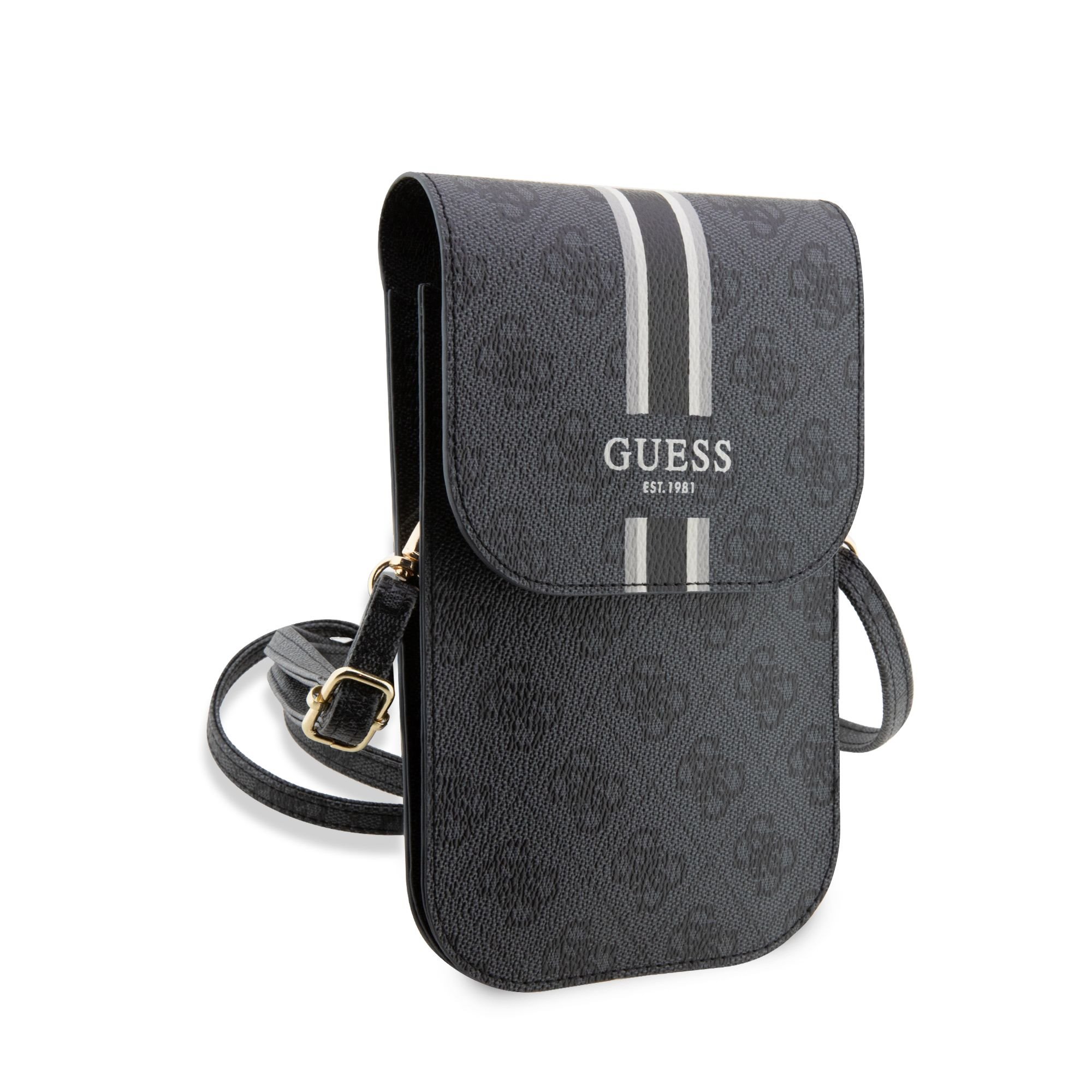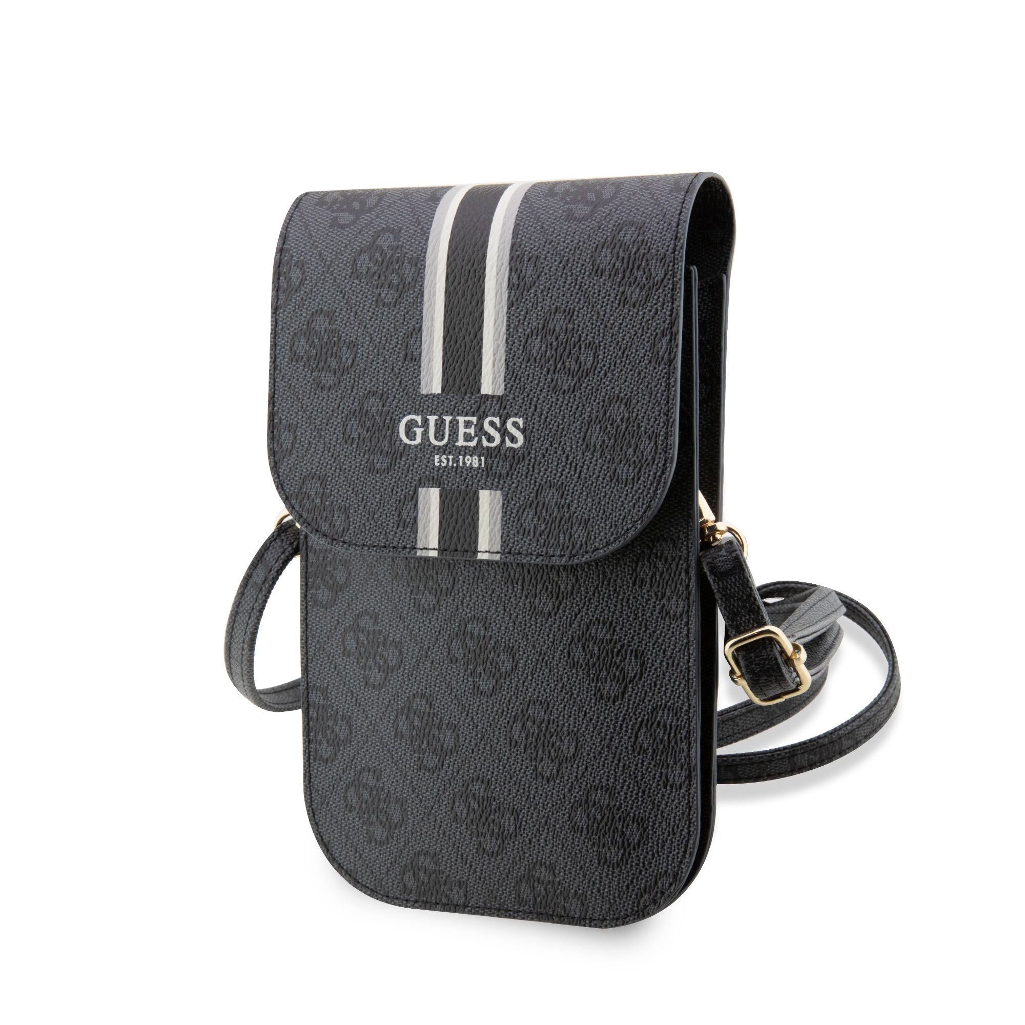 Guess PU 4G Printed Stripes Taška na Telefon Black