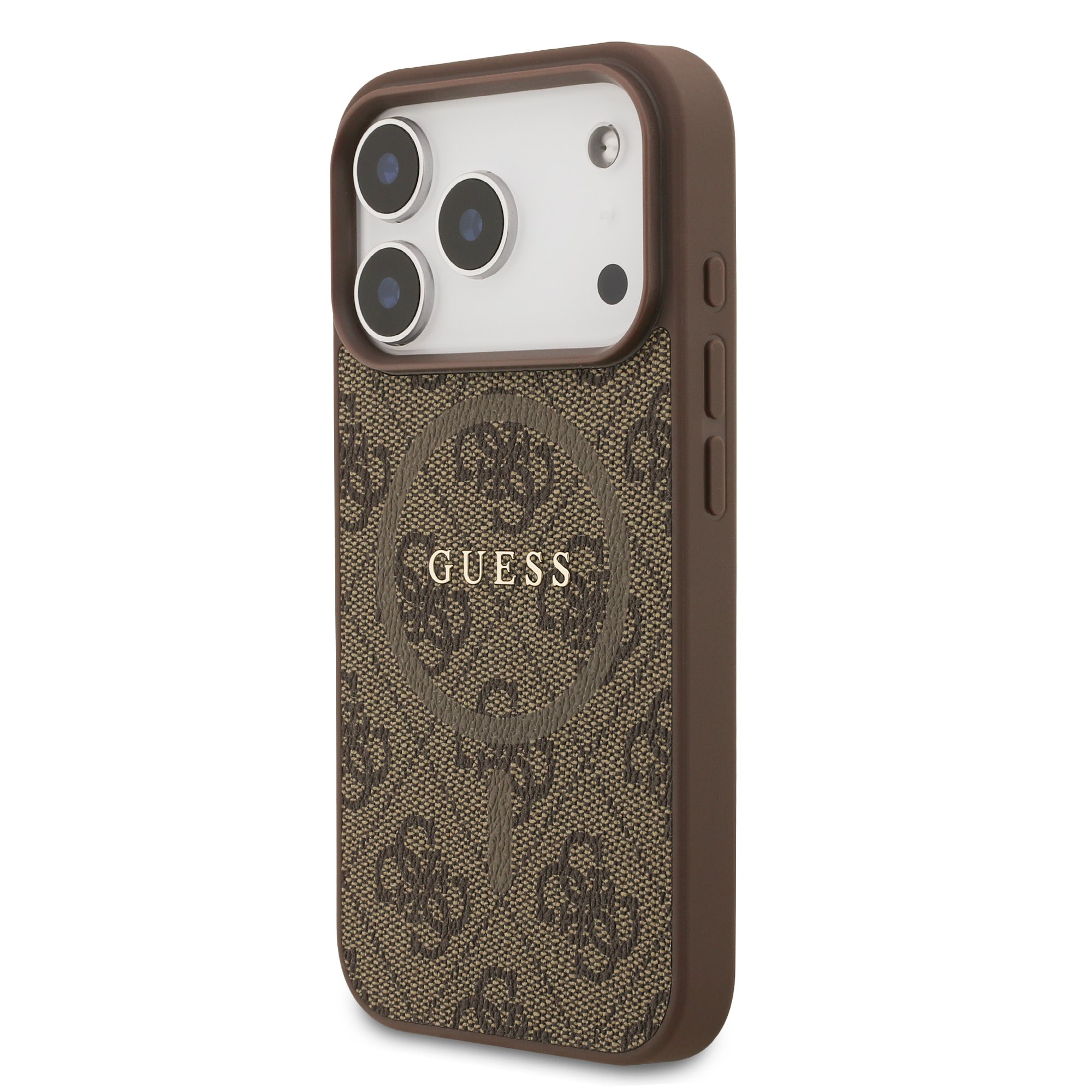 Guess PU Leather 4G Colored Ring MagSafe Zadní Kryt pro iPhone 17 Pro Brown