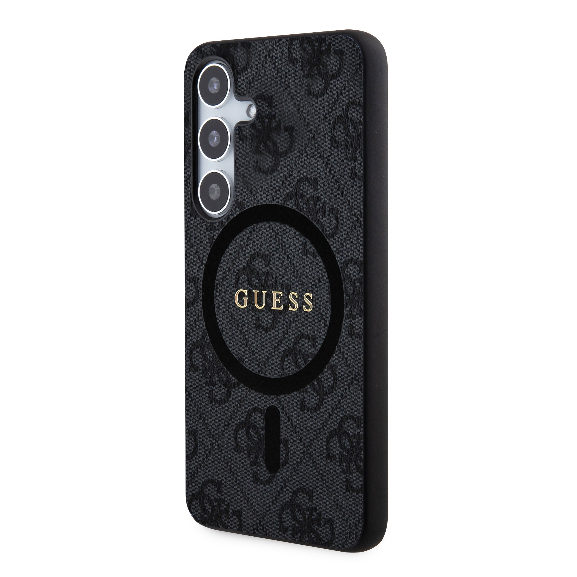 Guess PU Leather 4G Colored Ring MagSafe Zadní Kryt pro Samsung Galaxy S24 Black