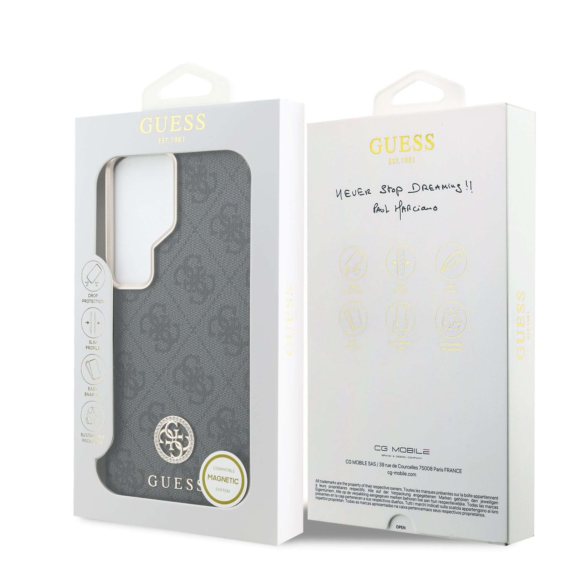 Guess „4G“ elegantní potisk doplněným o Strass Logo nabízí nejen luxusní, ale také nápaditý design.