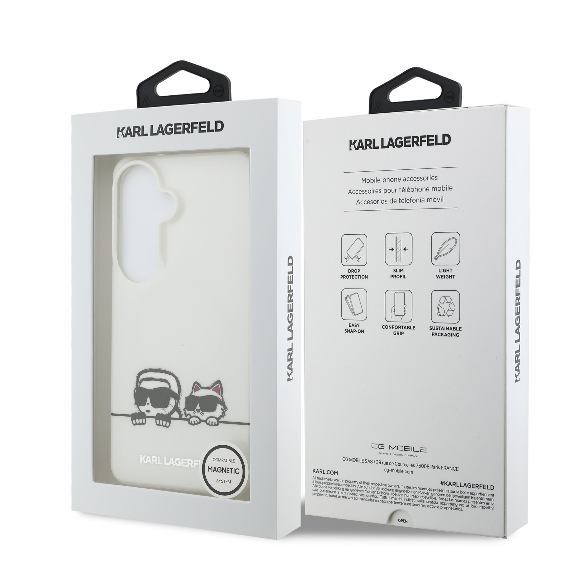 Zaujměte krytem, který okamžitě přitahuje pozornost. Peekaboo logo s motivem Karla Lagerfelda a jeho kočky Choupette na zadní straně podtrhuje nevšední a moderní styl.
