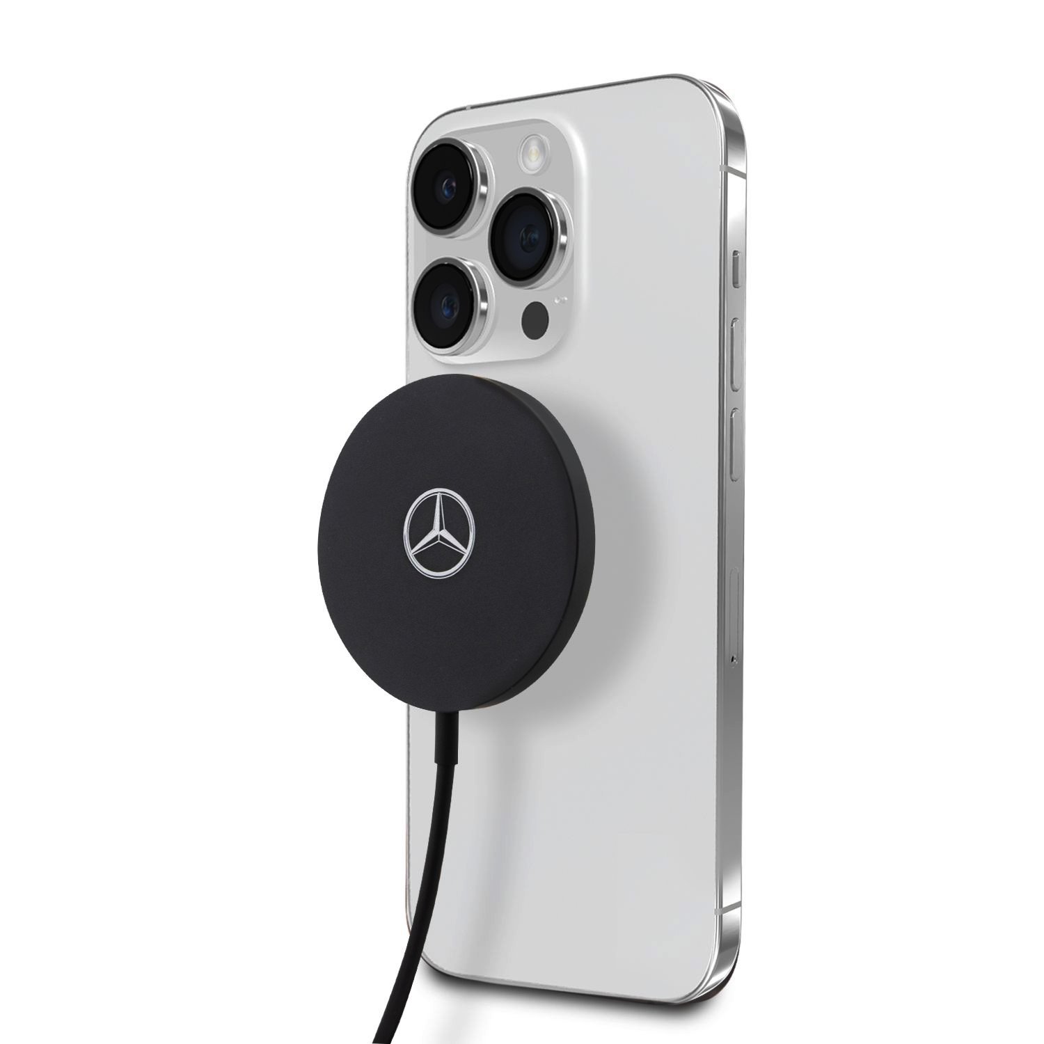 Mercedes 15W magnetická bezdrátová nabíječka se stříbrným logem dodává prvotřídní vzhled a vyjadřuje váš styl díky výraznému značkovému designu.