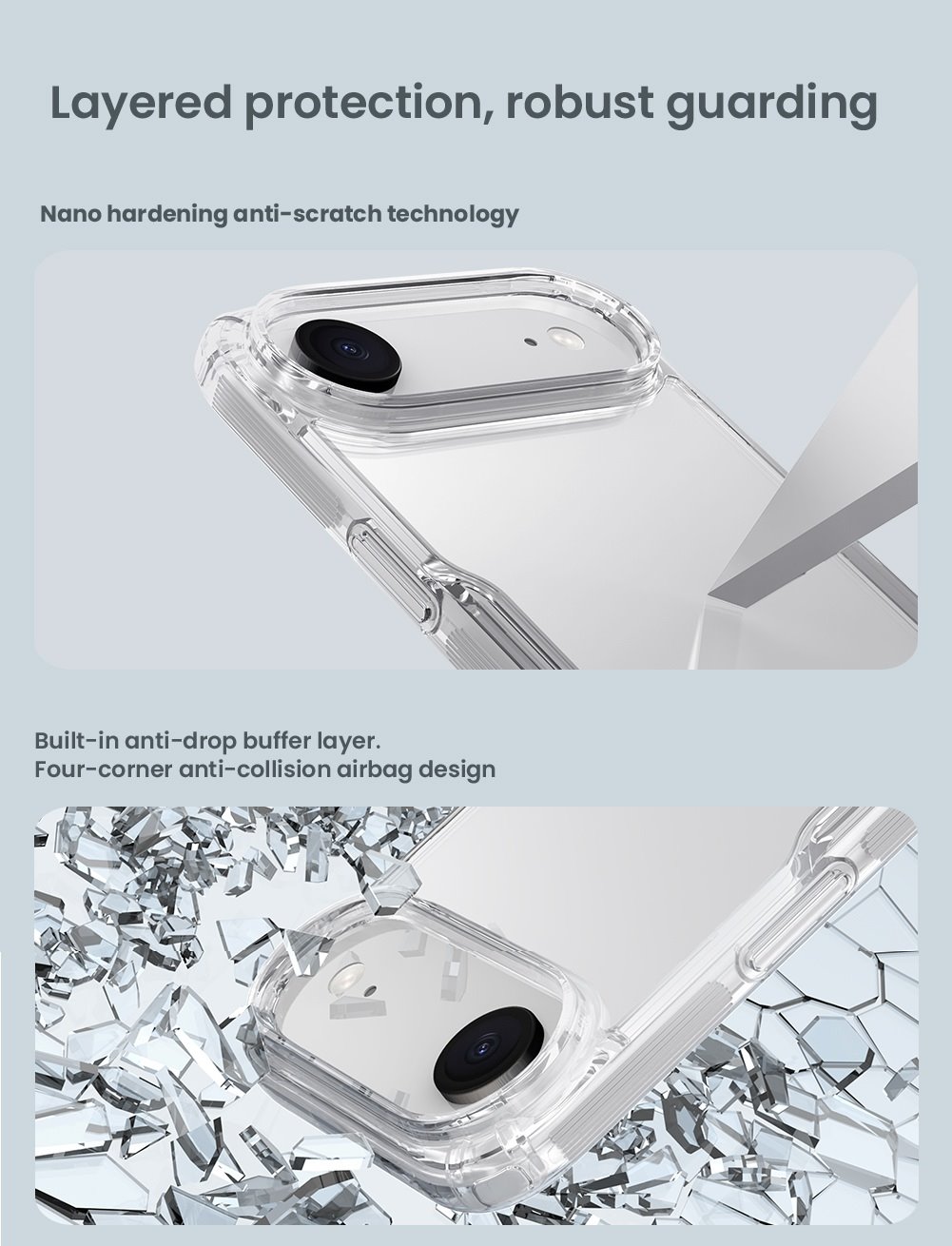 Kryt je oproti klasickému Nature TPU vyrobený z kombinace dvou materiálů PC/TPU.